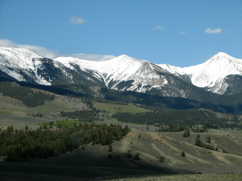 A late season storm had plastered the Sawatch range (the above view shows Mount Princeton) with a fresh coating of snow. The juxtaposition of lower green slopes with white snowcapped peaks was a sure sign of Spring in Colorado.