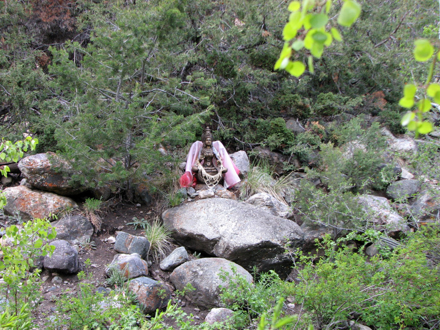 The town of Crestone is quite eclectic, and the area near the trailhead is home to various New Age and Buddhist centers. Here a Buddha greets passersby.