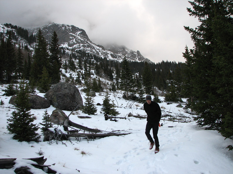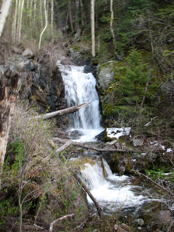 At roughly a mile and a half in, we came across this nice waterfall. As we climbed past 9000 feet, we started seeing fresh snow. It wasn't very thick - just a few inches at the most, but a sign that winter was still close at hand.