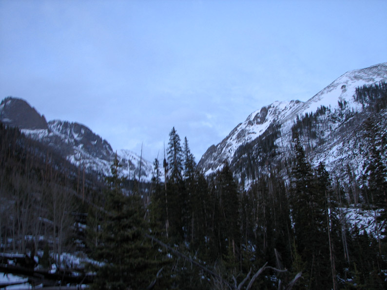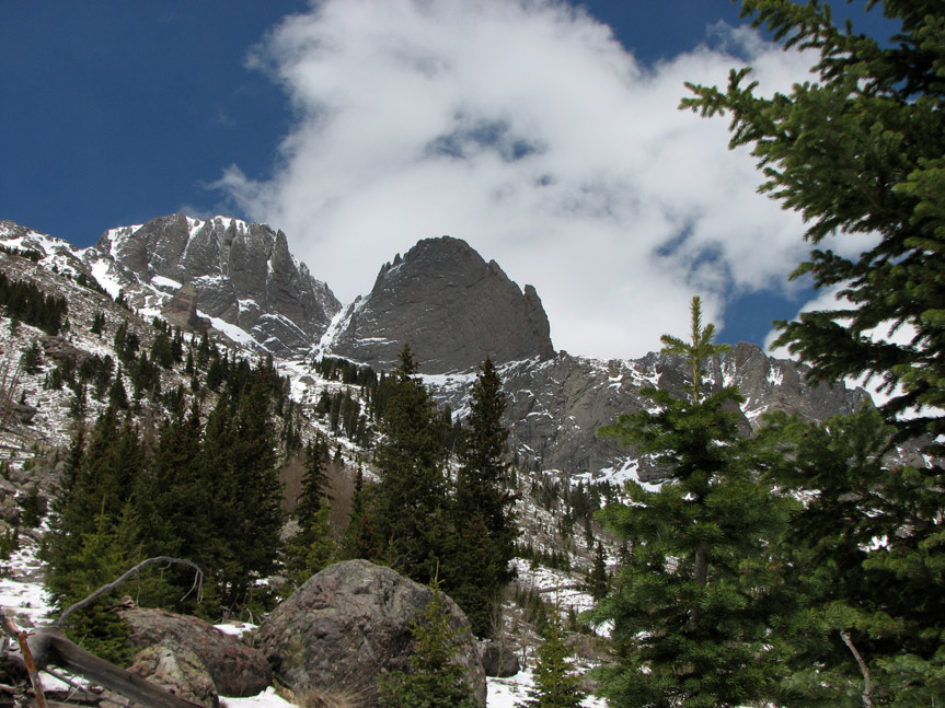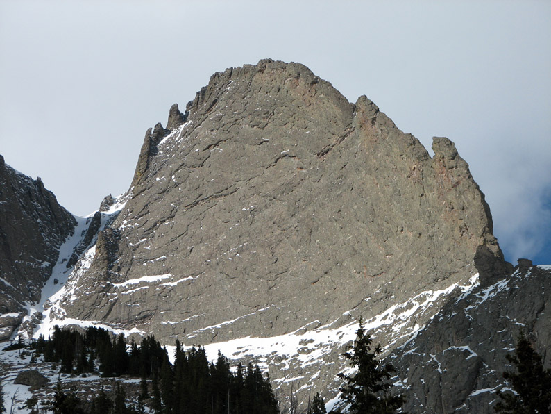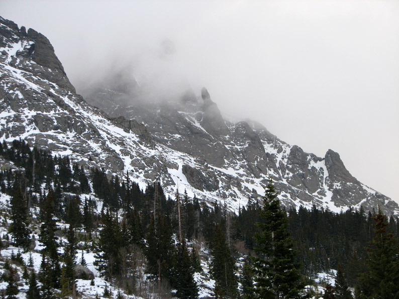 These were truly spectacular mountains - this picture (taken later in the day) shows 'The Prow' on Kit Carson Peak. Believe it or not, but there is a climbing route which ascends the knife edge from lower right up towards the top center!