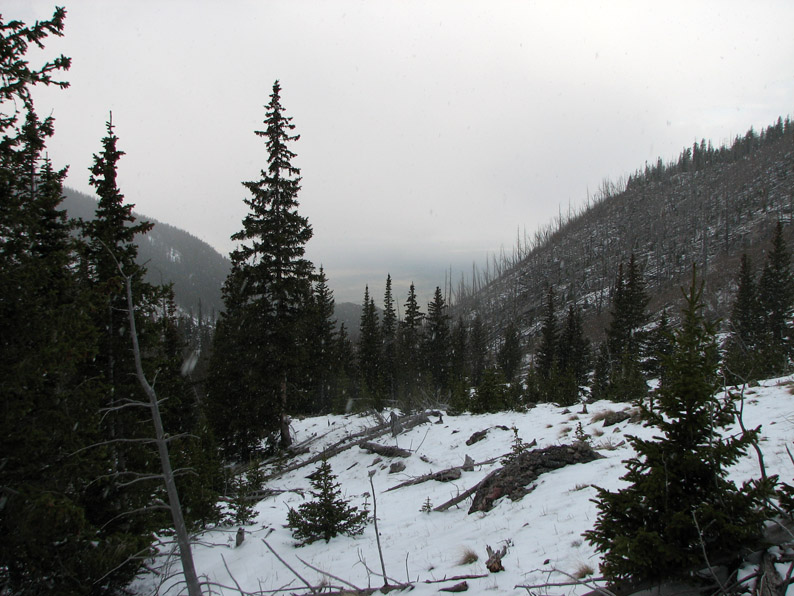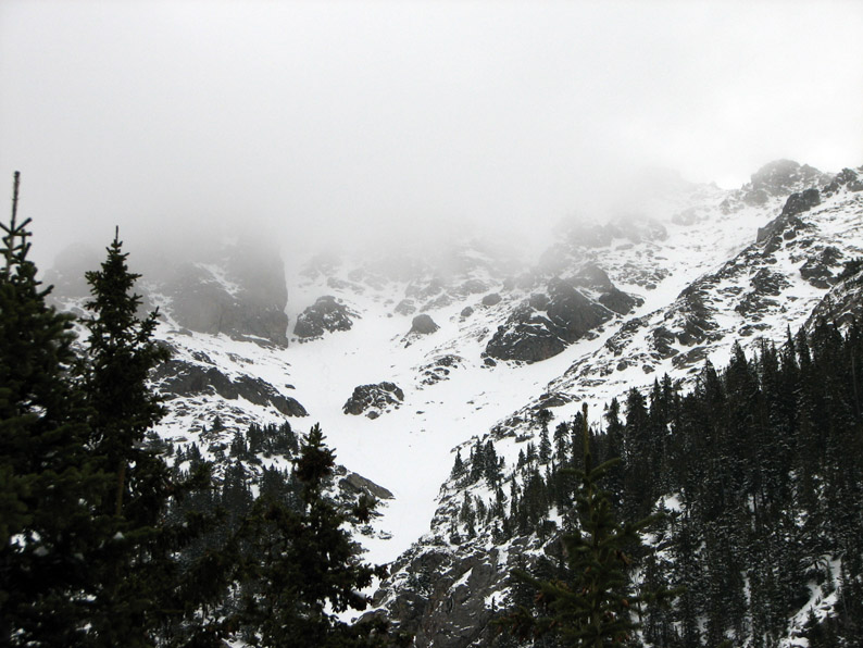 Crestone Peak was still hiding - this sight was quite worrisome. We definitely did not want to be doing a steep snow climb in low visibility - even on Colorado's "small" mountains, it is easy to get lost and quickly find yourself in dangerous places.