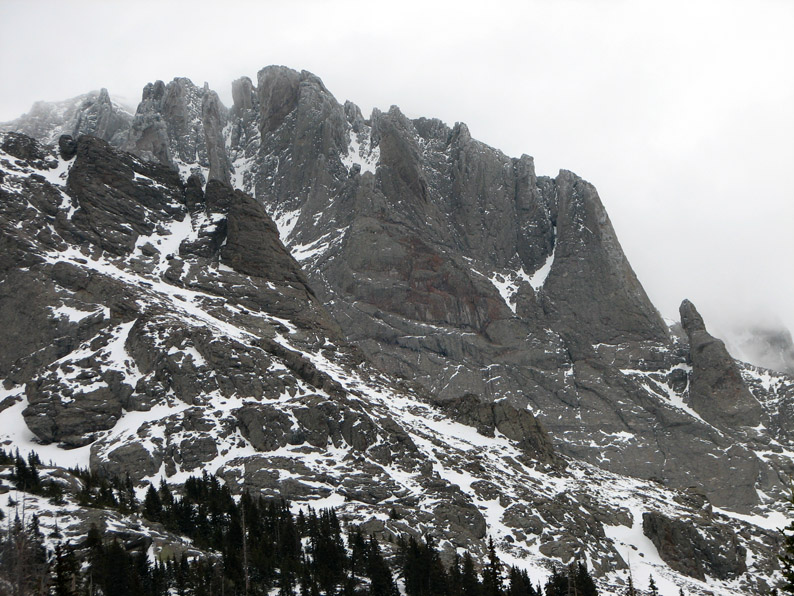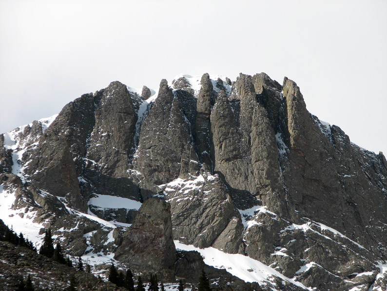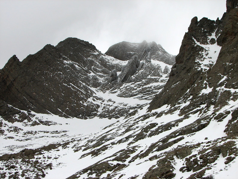 Here is a view looking up into the belly of Kit Carson Peak. The Prow is now on the left.