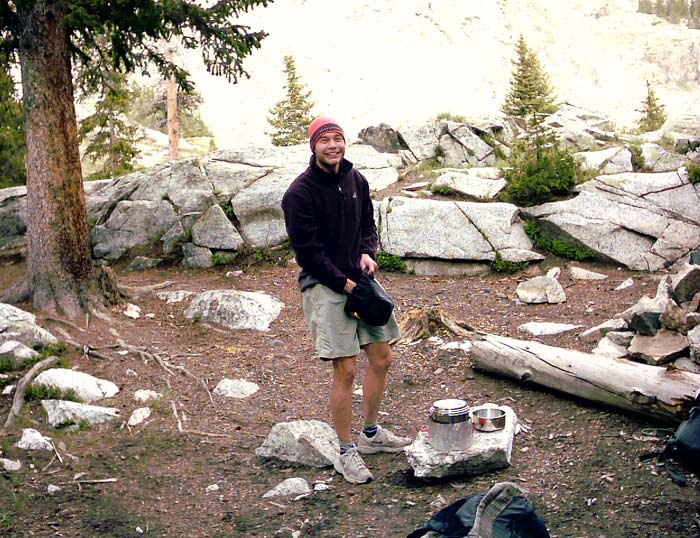 By this point, I had used up all the memory in my tiny Aiptek camera, so I have not pictures to show of the descent. It was much faster going down than up, especially because I was able to slide down several hundred vertical feet on some snowfields, which was a blast. About an hour and 45 minutes later, I cruised back into Lake Como and started to pack up. After a snack, we headed down to the car.