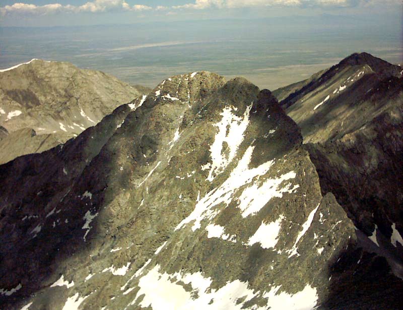 In this view, from about 12,000 feet, Ellingwood is basking in the morning sunshine at center left.