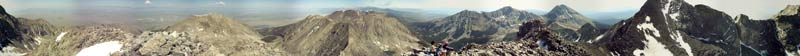 6. and Little Bear, arguably Colorado's hardest 14'er lies to the Southwest at the edge of the panorama. Needless to say, we were not even thinking about crossing the astonishing connecting ridge to bag Little Bear -- that will have to wait for a separate expedition when we have much more rock climbing experience.