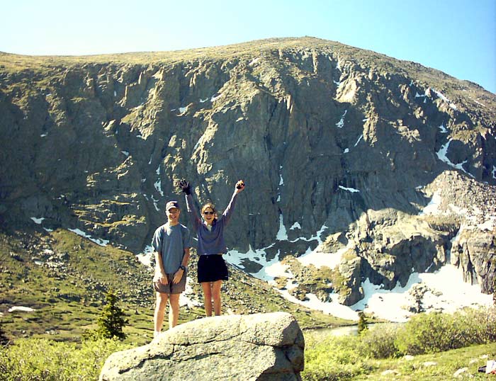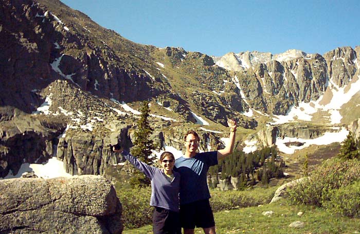Phil and Sara framed by the imposing cliffs to the east. The Mount Evans road is somewhere on the other side.