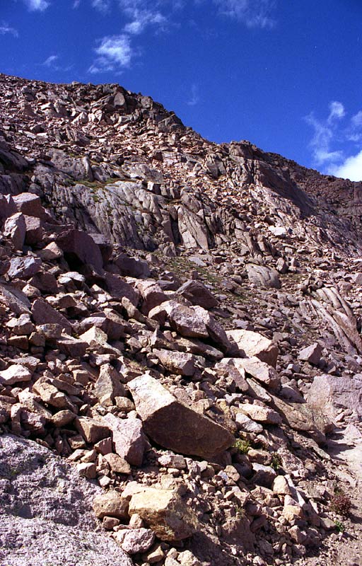 The last mile of trail is quite amazing -- the switchbacks get tighter and tighter and the views are incredible. The great thing about switchbacks, is that when you're going up, you can see where you just came from. The bad thing about them is that it can be annoying on the descent -- it seems to take forever, especially when you can see every turn and jog of the trail. But these distinctions are all just philosophical! It is much easier to go up switchbacks than to go straight up the mountain (as is required on many routes up other Colorado 14'ers).