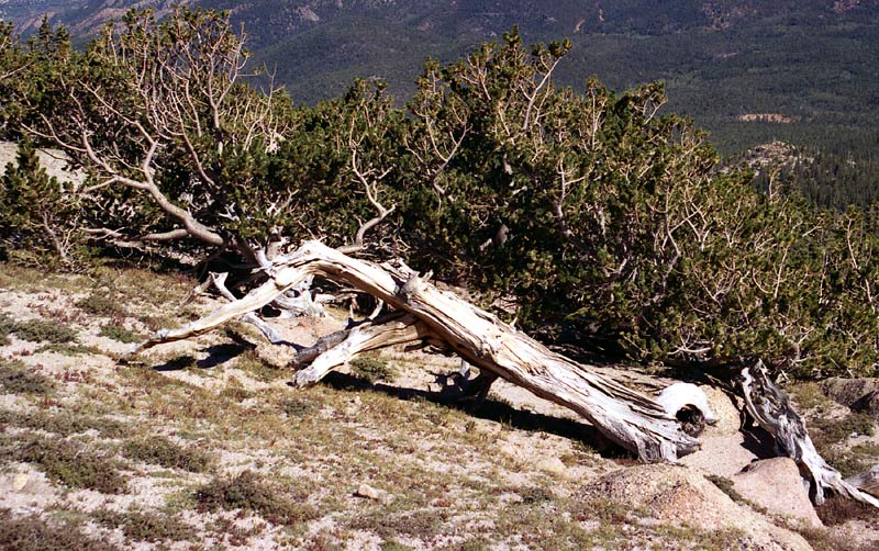 Due to the effects of the altitude and weather, the trees become very gnarly and stunted just before treeline.