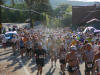 I was relieved and glad to finally cross the finish line. Matt Carpenter was there shaking hands with the finishers - he had finished more than 35 minutes before me with a time of 1:30:53 (only 0:00:47 off the race record). I downed a bunch of Gatorade, ate half a banana, a couple orange slices, and some grapes. I felt pretty beat, and my cramped muscles were needing some stretching and rest. Eric came in just a couple minutes later, then Raquel and Jotham. We picked up our snazzy finisher shirts and headed down Ruxton Avenue to the park. After a dip in the creek, I changed into clean clothes and enjoyed a free massage by the Colorado Institute of Massage! I really felt pampered at this race! Then I rehydrated lots of watermelon and enjoyed 4 slices of Dominoes pizza at the awards ceremony. This is a real quality race, and all the entry fees were donated to local high school running programs and organization related to the trail and community. All the age-group winners received a free pair of La Sportiva trail running shoes and there was prize money for the winners. We cheered Dan on as he collected his age group award (1st in his age group!). Raquel also got an award with 4th in her age group. At the end, there was a raffle and I won I free subscription to Marathon and Beyond magazine. Finally, I even caught one of the hats that were thrown out to the crowd. Mike and I headed back up to Fort Collins and arrived back in town by 2:30 PM.