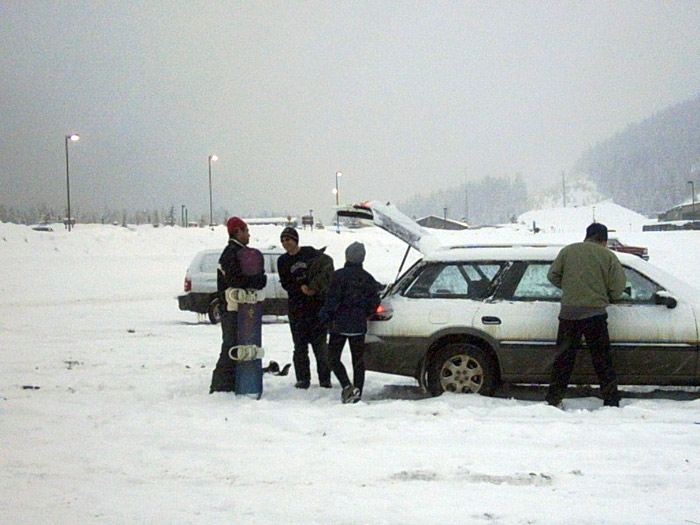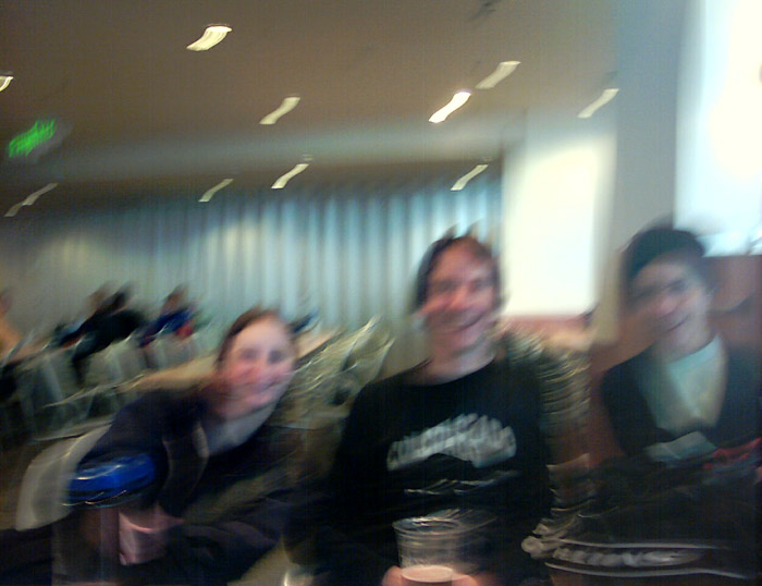 Kate Dolan-Musgrave, Michael Bell, and Gabriella Mora Rojas kick back after a day of excellent skiing. No, the cameraman didn't have one two many beers (I don't drink), this is just what you get when you buy a $50 digital camera :)