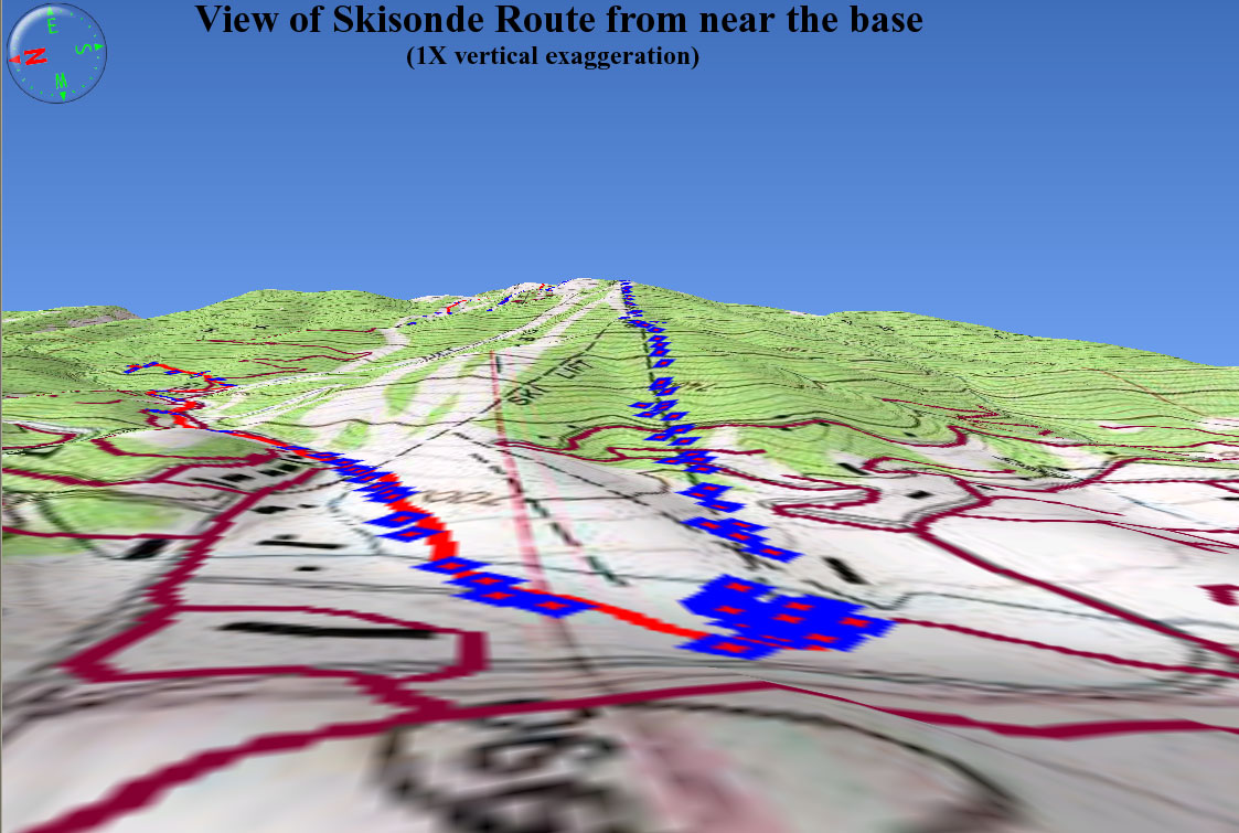 (Streets and 3D Views). The primary skisonde routes are illustrated in red