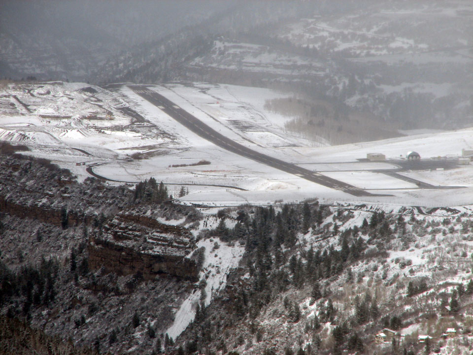 Telluride's airport is the highest commercial airport in the United States, and the 8th highest commercial airport in the world (elevation: 9078 feet). It is located on top of a mesa, with a big drop-off at the end of the runway and a dip in the middle! You can fly into this airport on commercial carriers during ski season, but I think most of the traffic is private jets of the rich and famous. The common folk mostly fly into Montrose or Grand Junction.