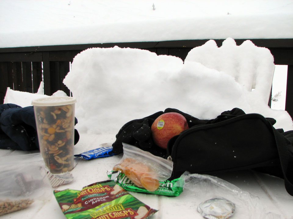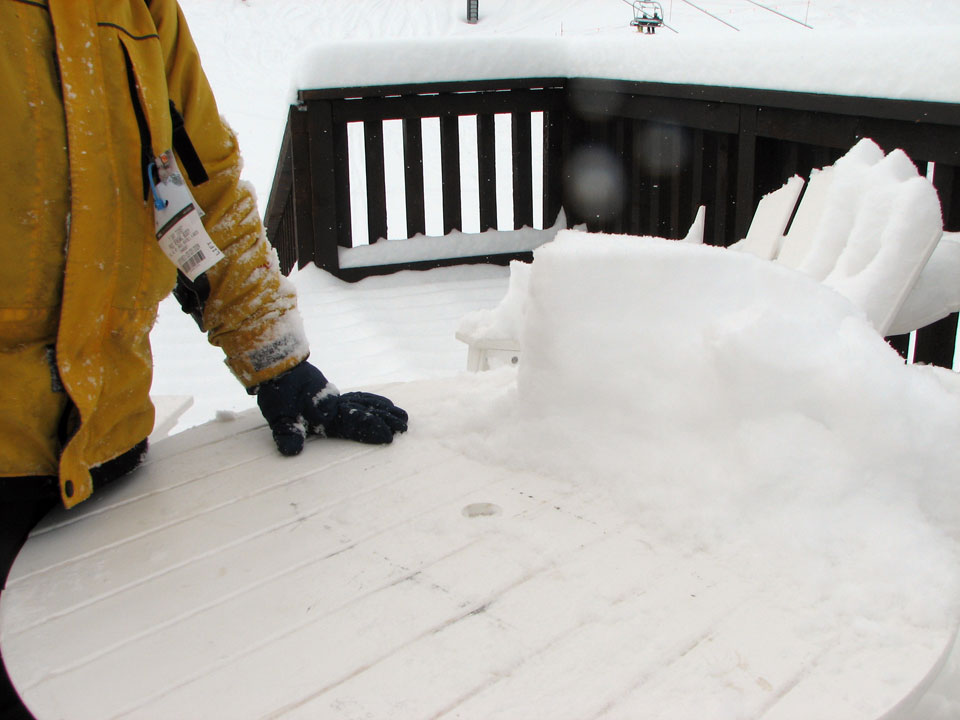 Before eating lunch, we had to clear away the 10-14" of fresh snow. What a chore . . .