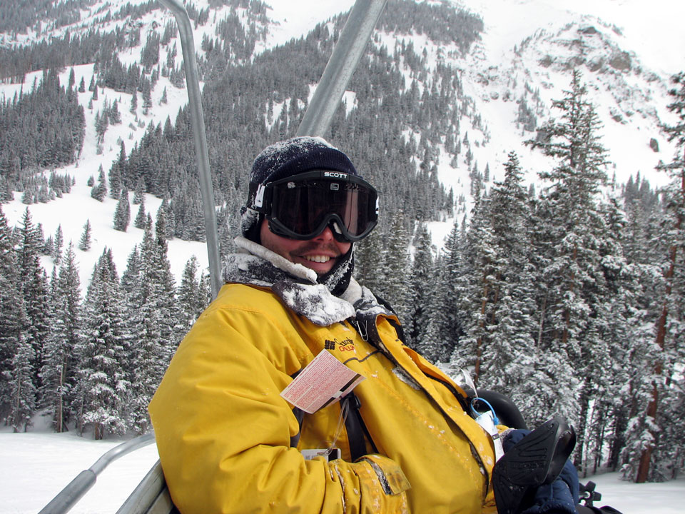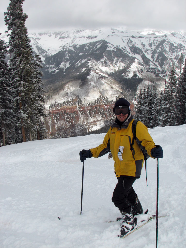 Getting warmed up for the day - yesterday's ice and slush at Beaver Creek stripped the wax off my skis, so they barely had any "go" speed in today's heavy powder. I went down to the base and the kind folks at the ski shop gave my skis a free hot belt wax - they glided much better after that! That made my day right there - isn't Telluride a great place?!