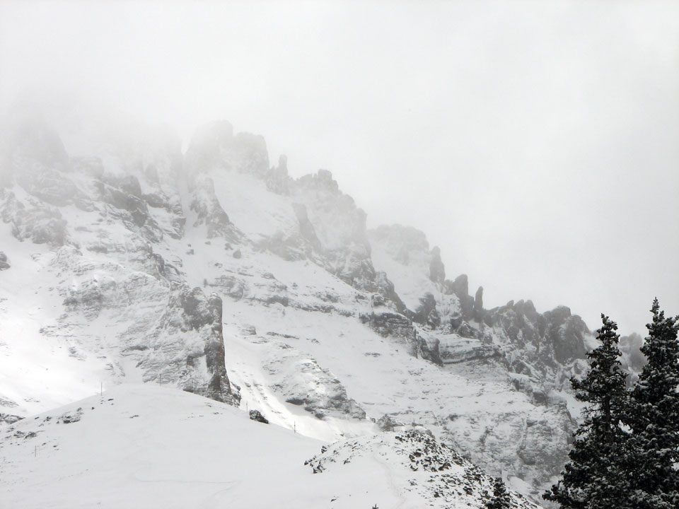 Well, there's not too many ski areas on the continent with scary mountain views like THIS, right above where you're skiing. (Sunshine and Lake Louise, up in Alberta, come close though).