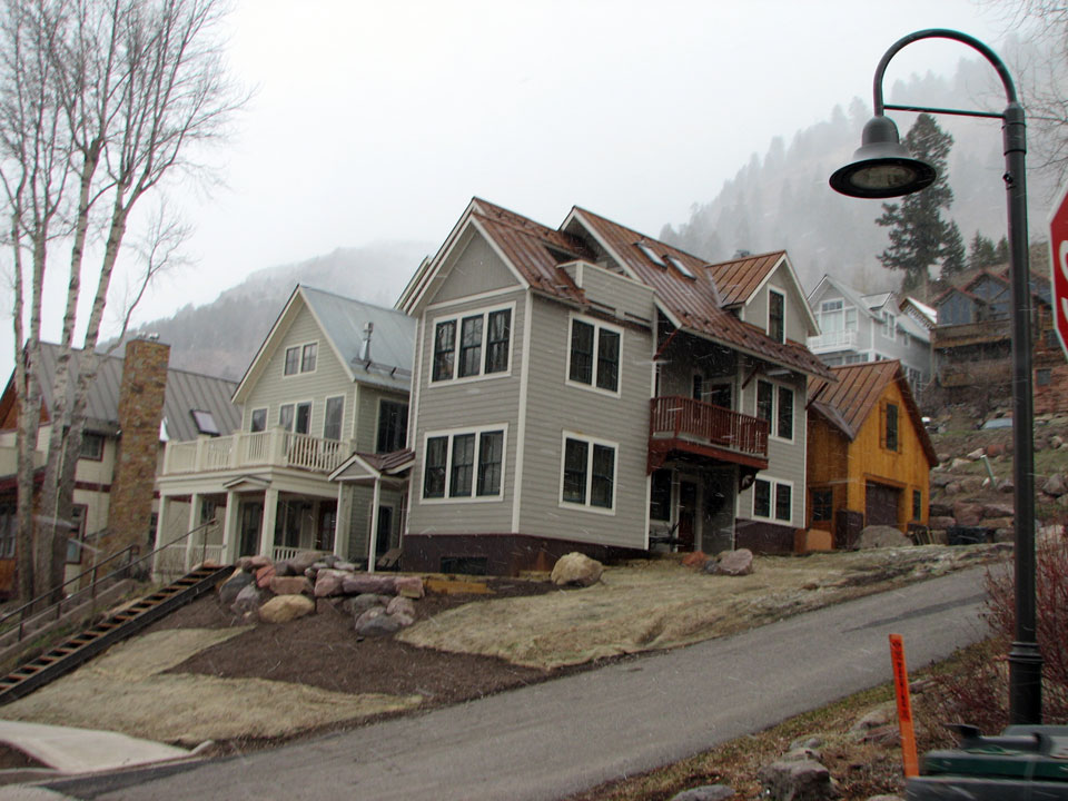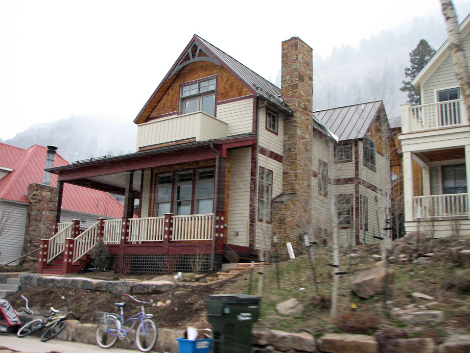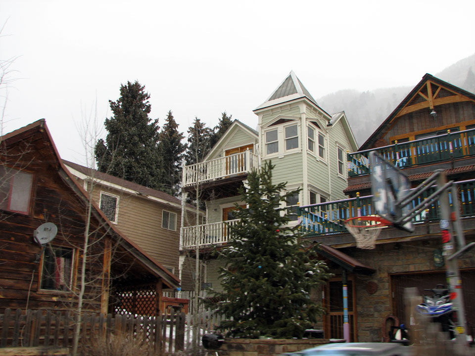 Note the avalanche arresters on the roof - this keeps people from getting buried when they walk out their front door (it happens!).